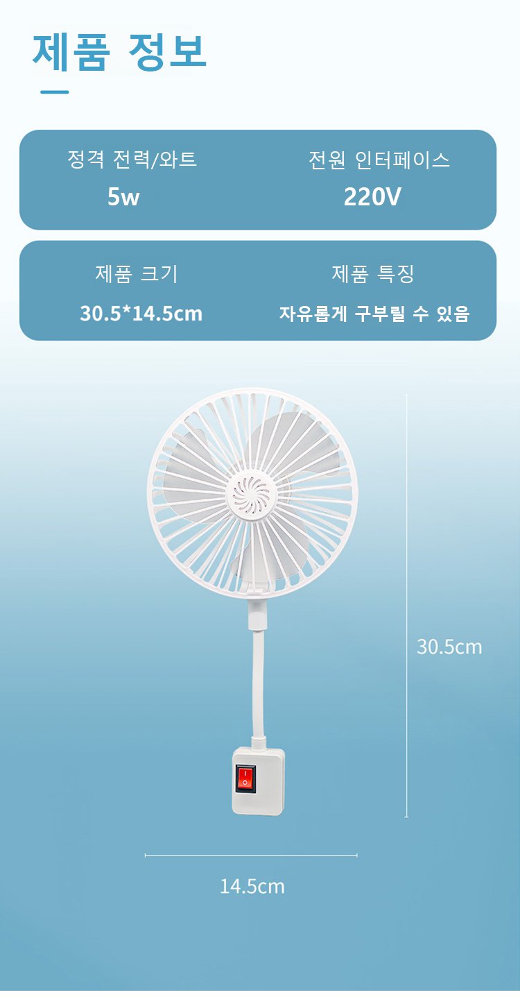 무음 소켓 미니 선풍기 제품 전체 이미지